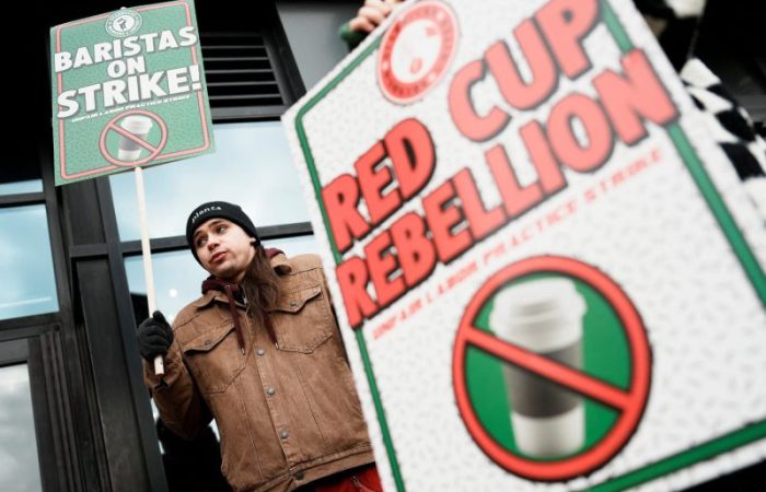 More than 1,000 unionized Starbucks workers went on strike at 65 U.S. stores Thursday to protest a lack of progress in labor...